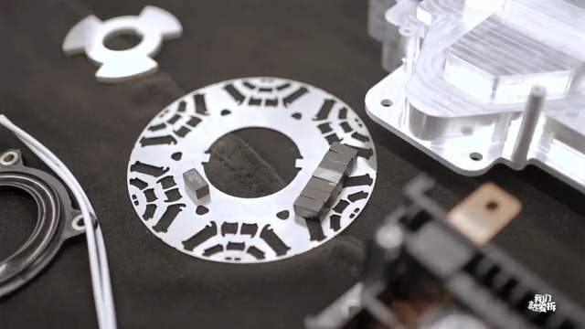 第一,比亚迪重新设计了硅钢片,厚度只有0.35毫米,叠加时涂抹特殊的胶体,使其贴合更加紧密。